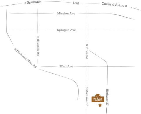 From I-90 take the Pines exit and head South to HWY 27. The Elk Ridge Heights gated entrance will be found just South of 32nd, if you take a right on Copper River Ln. Elk Ridge Heights is just 20 minutes from Downtown Spokane, and 30 minutes from Coeur d'Alene.